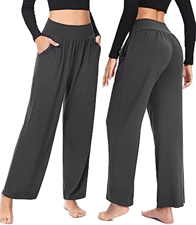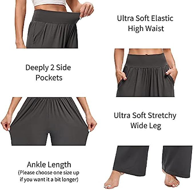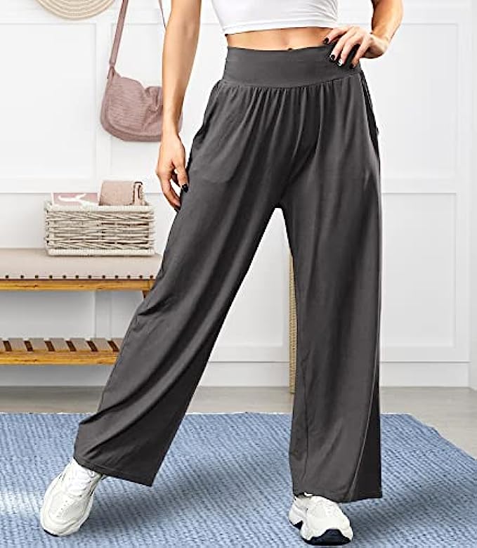 ✅ ULTRA SOFT & LIGHTWEIGHT MATERIAL - The ASIMOON wide leg sweatpants women was made from 95% Polyester & 5% Spandex.The material has the same high spandex content that other womens loose yoga pants did and it's the perfect weight to not be see through but still light and breathable. These woman's comfy pants are buttery soft and have great stretch and movement. The loose fitting makes them really comfortable for using as high waisted lounge pants.