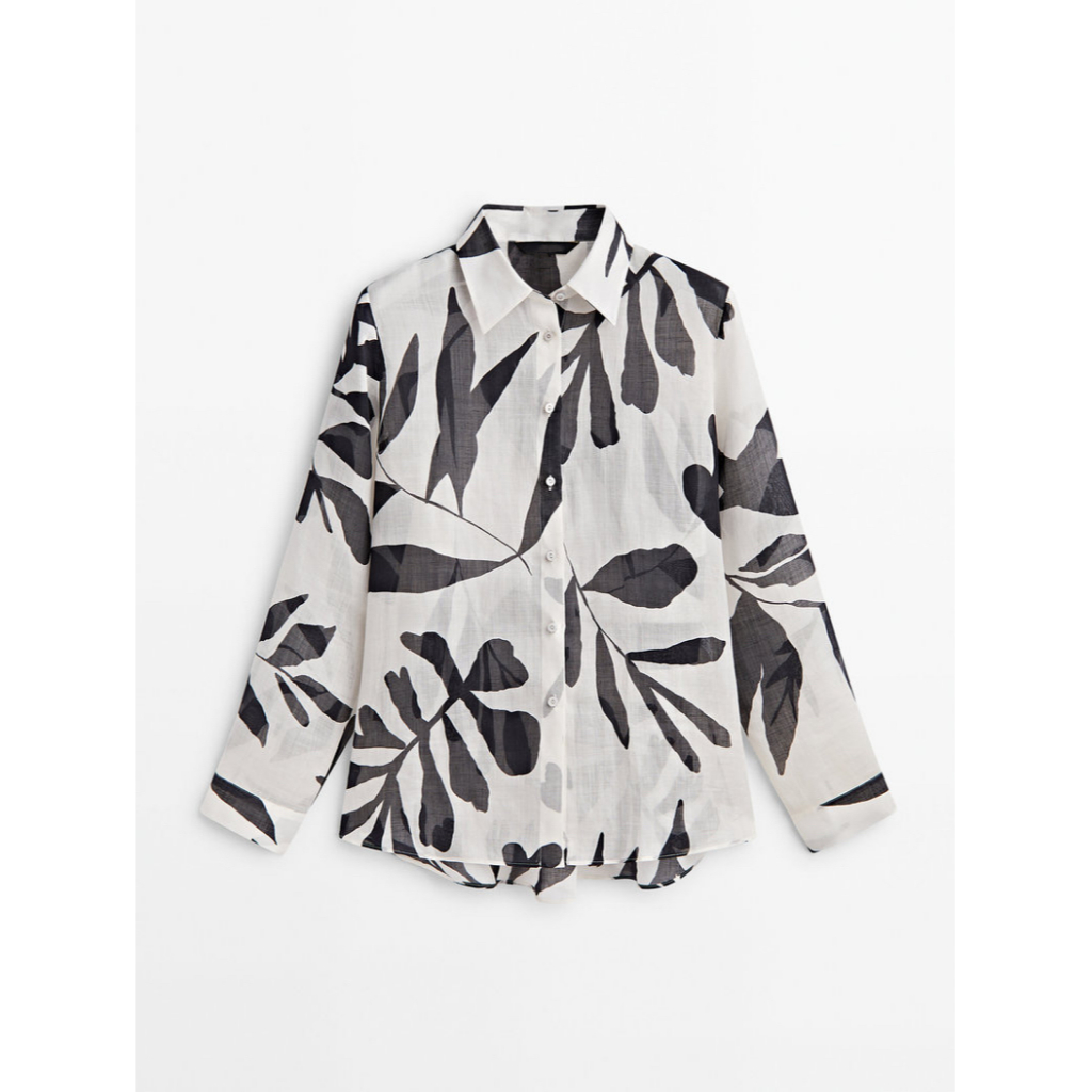 ZARA casual style comfortable pure ramie flower printing long sleeve shirt 05122818250