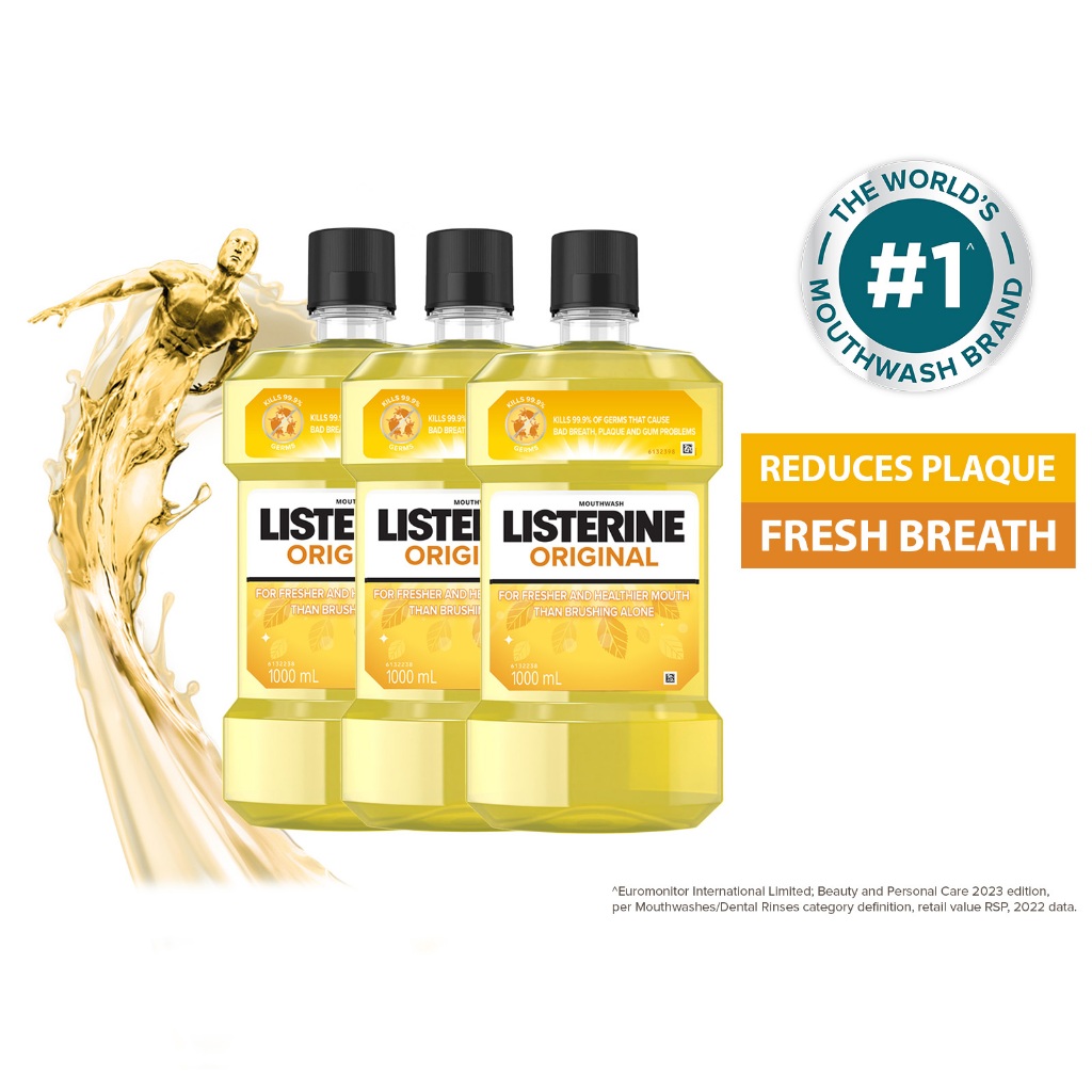 [Bundle of 3] Listerine 1L Mouthwash Value Pack (Cool Mint/Cool Mint Zero/Total Care Zero/Original/Green Tea/Healthy Whi