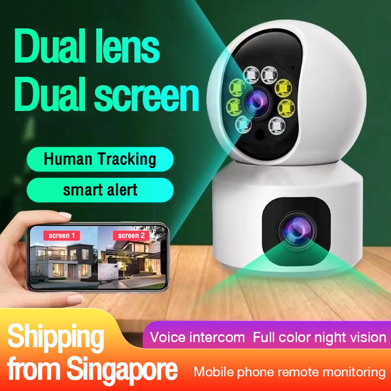Dual Lens 5G WiFi Camera Dual Screen Baby Monitor Auto Tracking Ai Human Detection Indoor Home CCTV Camera Connect