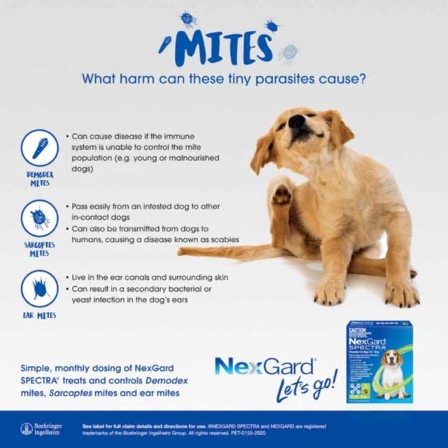 Performance:good Quality:good Suitability:good Stock up of monthly nexgard spectra for my dogs. One tablet per month to keep them safe and healthy. Products came nicely packed, very new and fast delivery. Thanks