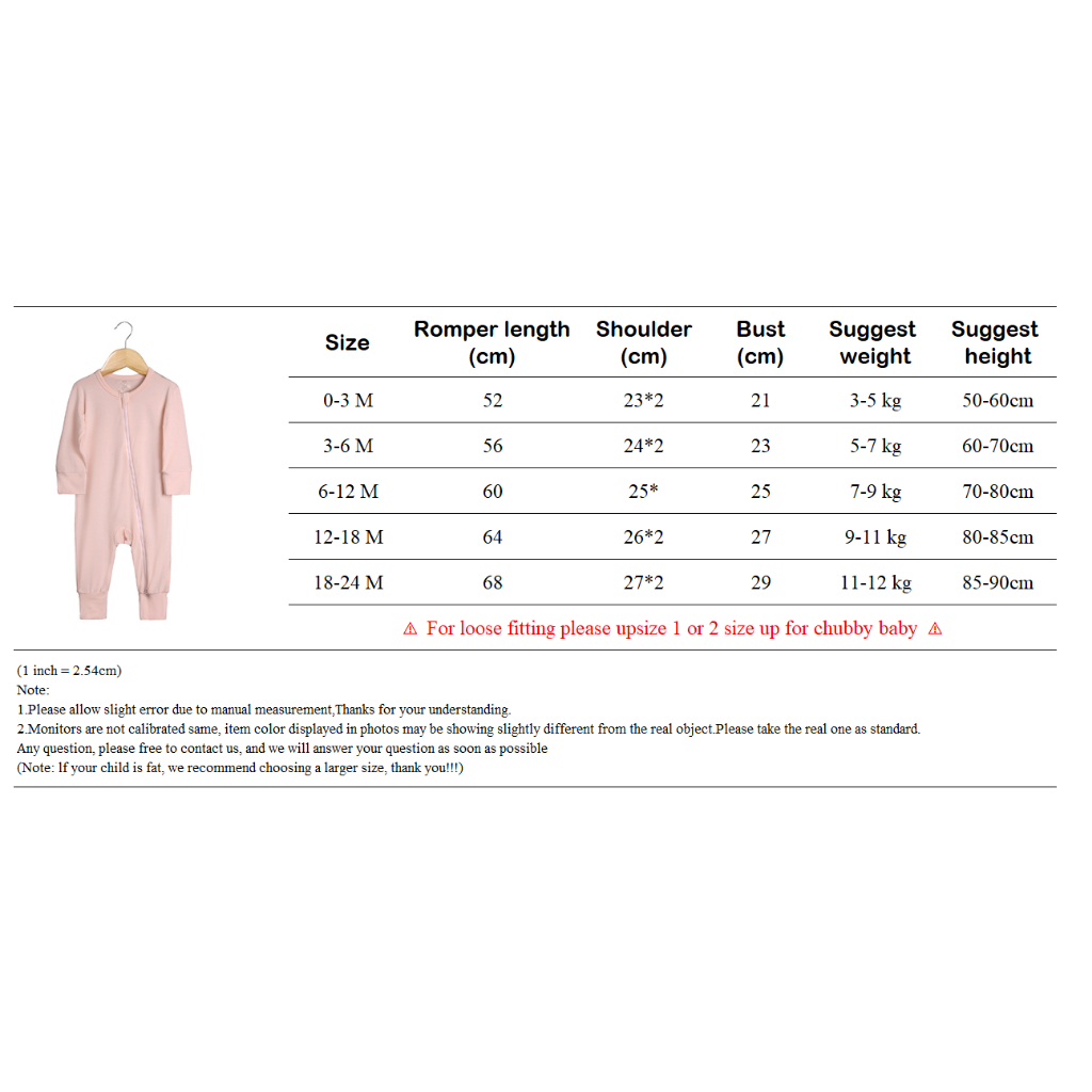 Material Quality:soft Colour:nice Stated Size 6M is for 3-6months. My baby is 4 months weighs about 6ish kilos. Fits her well for now with a little extra room for her to grow into. The material is soft! Stitching and zippers are good. Love that the feet can be covered up.
