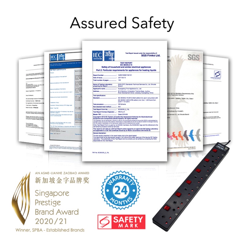 PowerPac Extension Cord, Extension Socket, Power Cord 3 Meter 1/2/3/4/5/6 way (PP3881BK to PP3886BK)