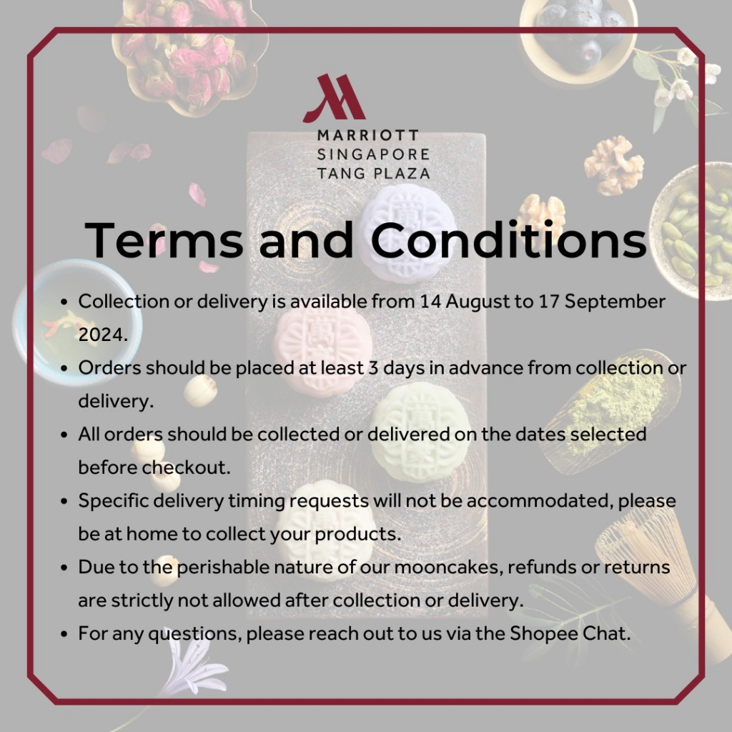 Quality:- Taste:- They are gifts so unable to comment on the taste, hopefully same as the past years. Uparcel tracking delivery is equally excellent on the updates …. Kudos for Marriott staffs and the logistics ❤️ Wishing all Happy Mid Autumn Festival