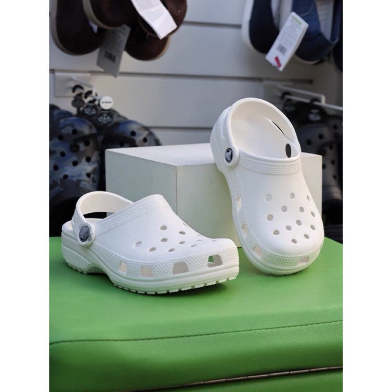 Material Quality:rubber Colour:White Looks legit Comes with crocs packaging Fast delivery but slightly damaged