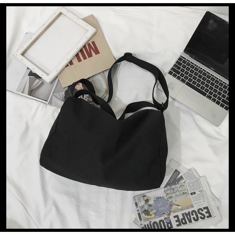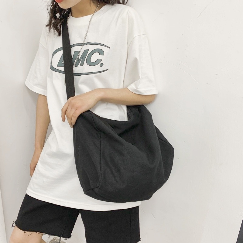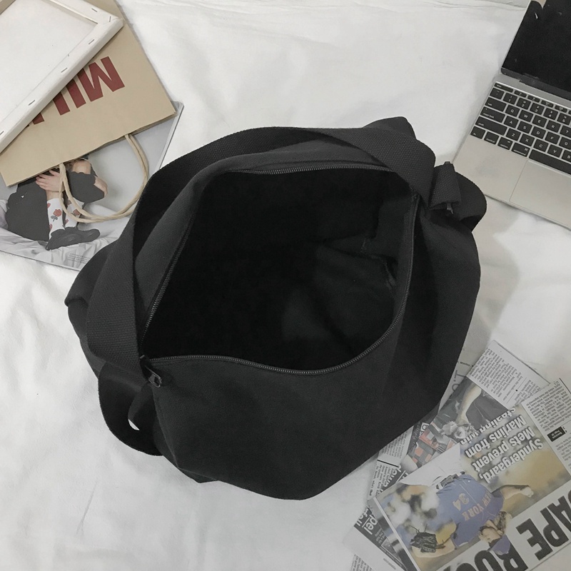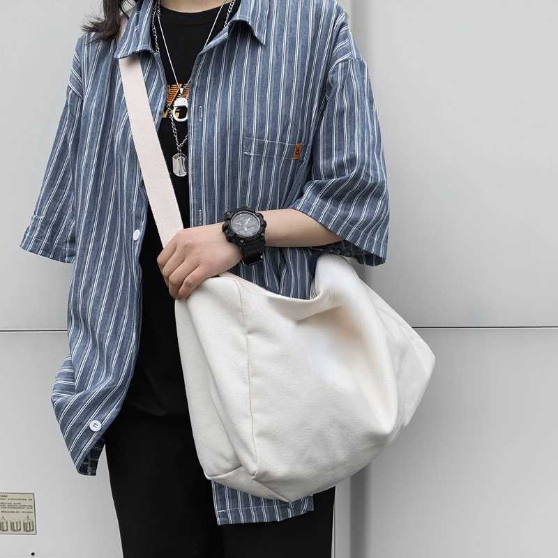 Solid Color Korean Fashion Ulzzang Canvas Bag Capacity Men Sling Bag Shoulder Crossbody Bag