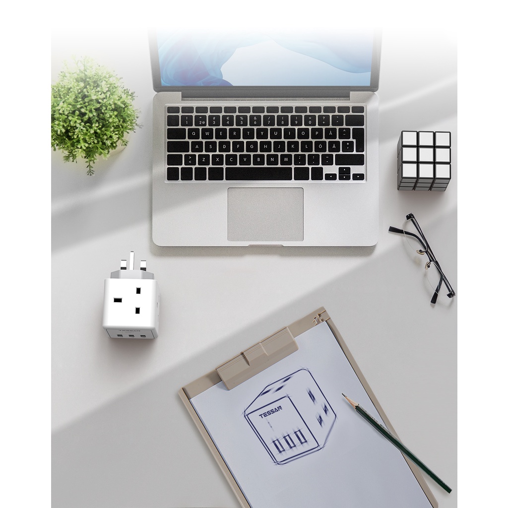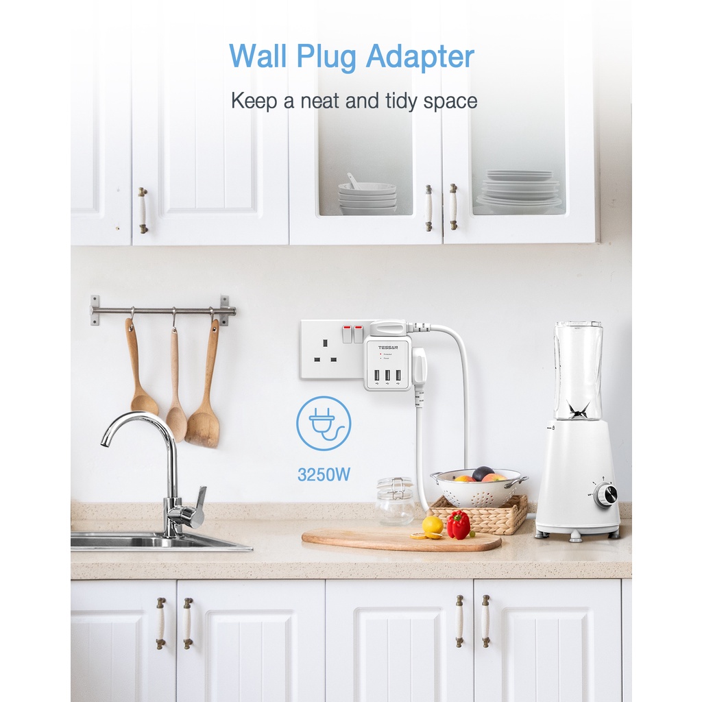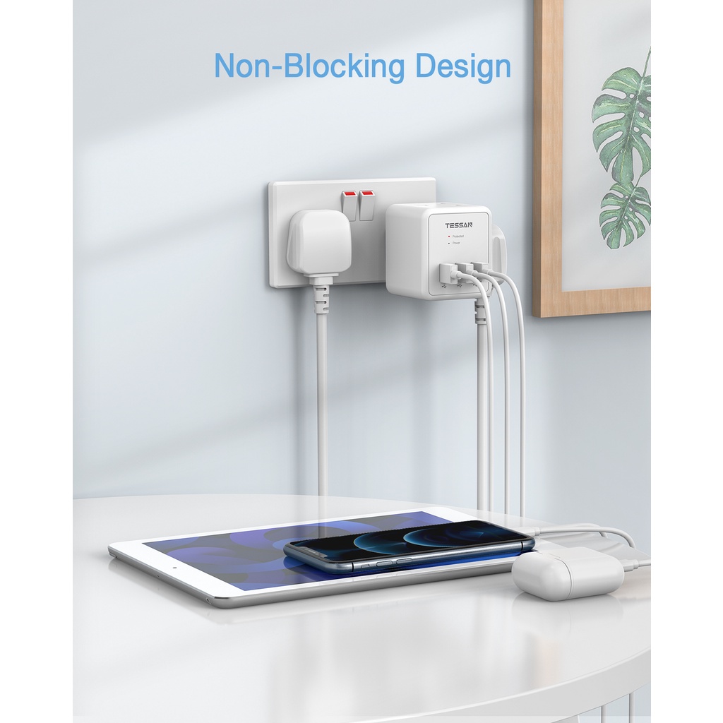 TESSAN Multi Plug Extension Adapter with USB+Type C,Surge Protector Wall Socket Charger Safety Mark