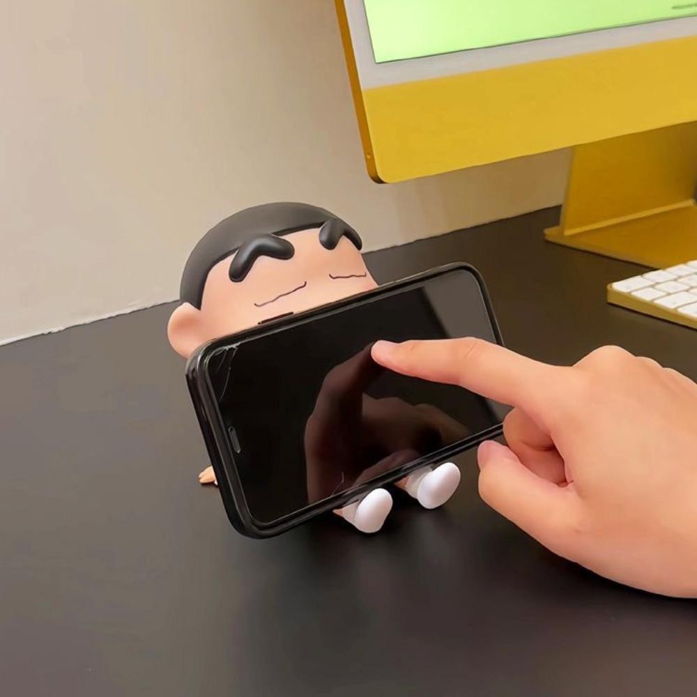 USTHOW Creative Phone Holder, Crayon Shin-Chan Figure PVC Doll Mobile Phone Stand, Figure Toys Support Desk Decor Portable Cell Phone Bracket Phone Accessories